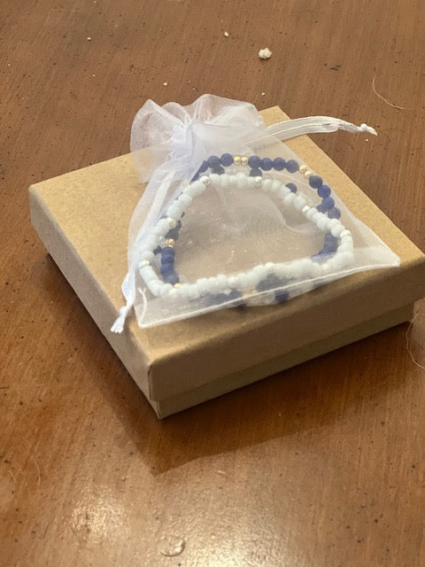 • Blue & White Mix Bracelet – A blend of blue and white beads with subtle shimmer, tying the whole set together.
